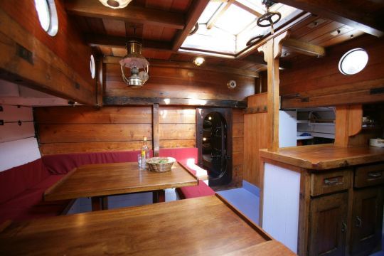 Born as a fishing boat in Denmark in 1919, then at the forefront of the first mixed units combining sail and motor, Lola of Skagen fished until 1946 east of Jutland, before disappearing from radar following a mine explosion. She reappeared in 1950 in western Denmark and continued fishing until 1975. She was then reconditioned by a Dutchman for sailing, with a lighter engine, until Jean-François and Margot purchased her in 1994. Capable of accommodating 10 passengers with 2 crew, Lola of Skagen nevertheless suffered the ravages of time, and tarets imposed a major refit in 2011, with 7,000 hours of work changing the hull and deck planking, as well as numerous structural parts. Jean-François explains: "If around 40% of the original parts remain, the boat is now perfectly sound."