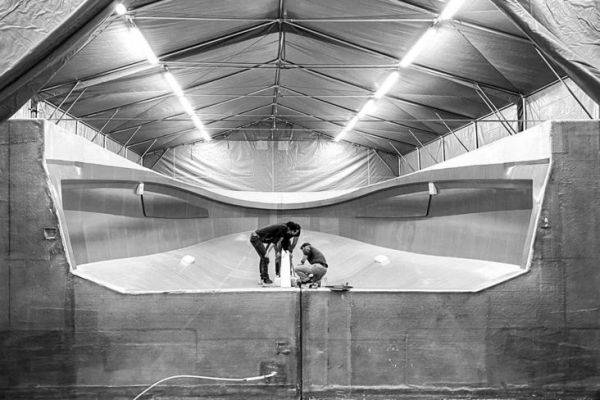 After signing with a first buyer, a call for tenders was launched to find a yard capable of carrying out this construction requiring a certain level of expertise. The Shoreteam shipyard, based near Caen, ticked all the right boxes for the project. Clément Bercault describes the early stages in the construction of this daring sailboat: