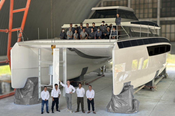 While many projects remain at the concept stage, the GR63 is a very real boat, currently in the final stages of construction in Hua Hin, Thailand. Designed and built by Frenchman Gilles Reigner, with Alexandre Fortabat as architect, this catamaran illustrates a concrete shift towards total energy autonomy and sustainable luxury.