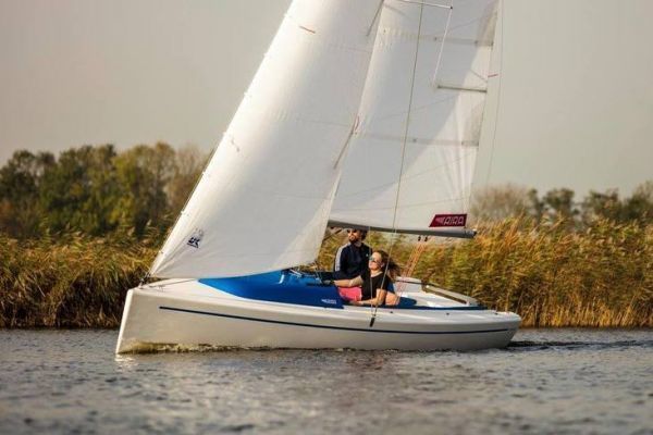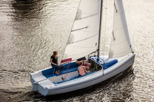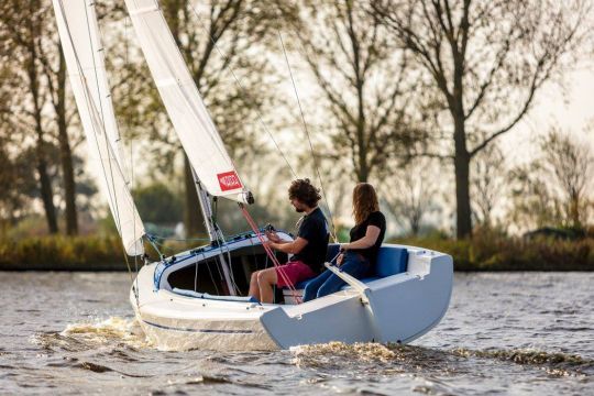 The sails include a 14 m² mainsail, an 8 m² jib and a generous 28 m² gennaker for dynamic downwind performance. The simplified rigging makes it easy to get the hang of, even for inexperienced crews.