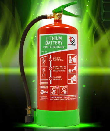 Developed by Fireblock, the new Lithium extinguisher uses an odorless, biodegradable gel composed of potassium polyacrylate, montmorillonite and quartz. When sprayed, this gel coats the burning battery with a thick layer, immediately stopping thermal runaway. Unlike water, which merely slows combustion, this process reduces the temperature within seconds, preventing the flames from re-igniting.