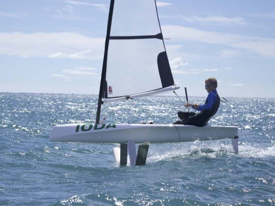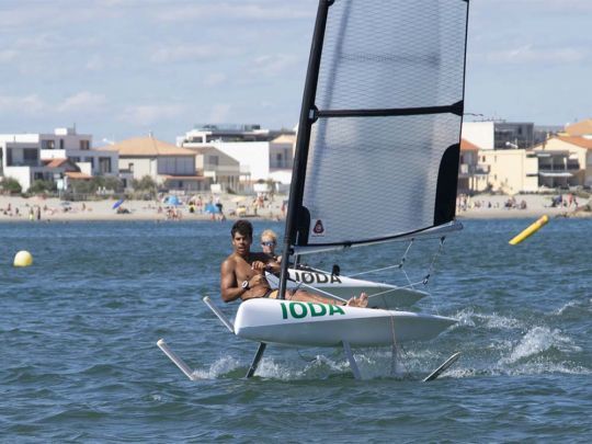 Designed as an introduction to flying, the Ioda is a 3.20 m solo dinghy weighing just 55 kg. Transportable, easy to rig in five minutes, it takes off in 8 knots of wind and reaches speeds of up to 24 knots. Its stability and low price (?9,000 excl. VAT) make it a boat designed to appeal to a wide audience, from yacht clubs to private users. With over 30 units already in the water, it is considered one of the most affordable foilers on the market.