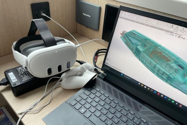 Before any work is carried out, the interior of the boat is dismantled and the empty hull is laser scanned. This provides a point cloud accurate to a tenth of a millimeter, the basis of the boat's digital twin. On this tool, the various layouts are simulated and visualized in immersion using a virtual reality headset. This preliminary stage enables us to validate volumes, traffic flows and technical areas.