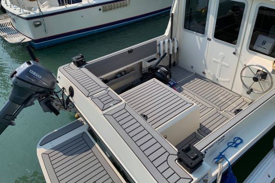 Raptor Deck Marine is available in two logistical circuits: pre-cut kits for standard models (sailboats, motorboats and RIBs), and cut sheets for custom fittings. Pre-cut kits are aimed at industrial yards wishing to reduce installation time. The latter are of interest to outfitters or refit companies able to manage cutting, with the possibility of local customization.